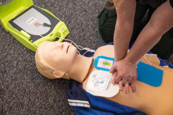 Many organisations have defibrillators, which are machines that can be used to attempt to correct someone’s heart rhythm if they are in cardiac arrest, which is vital in the first few minutes to increase the chance of survival.